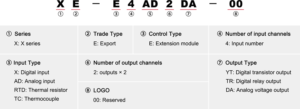 | 4 | X-E4DA-01 | X 시리즈 범용 아날로그 출력 확장 모듈, 4AO, 16비트 전압 출력/15비트 전류 출력 |