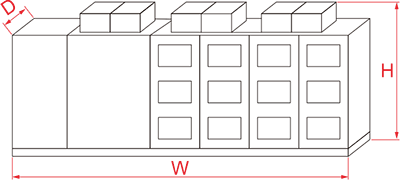 | 모델 | VFD 전력 (kW) | 용량 ( kVA ) | 출력 전류 ( ) | VFD 크기 ( D*D*H mm ) | 무게 ( 티 ) |