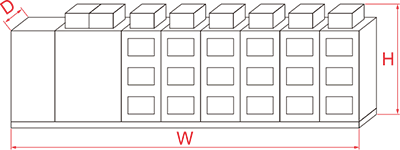 | 모델 | VFD 전력 (kW) | 용량 ( kVA ) | 출력 전류 ( ) | VFD 크기 ( D*D*H mm ) | 무게 ( 티 ) |