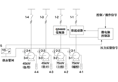 | 04 시스템 소개: 이 보일러에 있는 총 4개의 모터는 RVE32 주파수 변환기를 사용하여 각각 증기, 뜨거운 오일 및 뜨거운 배가스를 제어합니다. 뜨거운 배가스는 2개의 315KW 모터로 제어되며 목재 펄프 건조용 파이프를 통해 메인 팬으로 보내집니다. 2개의 315KW QD6000 인버터가 각각 2개의 팬을 제어하고 RVE32의 출력 주파수를 조정하여 팬의 출력 전력을 제어함으로써 뜨거운 연기 흐름의 정확한 조절을 실현합니다. 이는 프로세스 요구 사항을 충족할 뿐만 아니라 앞유리를 사용하는 것보다 더 효율적입니다. 뜨거운 연기의 흐름을 조절하는 것이 더 에너지 효율적입니다. 다른 두 개의 132KW 모터는 증기 발생기의 증기와 열유 발생기의 뜨거운 오일을 각각 혼합 챔버로 공급합니다. 증기발생기의 증기 출력을 조정하면 증기발생기의 압력과 온도를 제어할 수 있고, 열매체유 발생기의 열매체유 출력을 조정하면 열매체유 발생기의 온도를 제어할 수 있다. RVE32는 또한 모터의 출력 전력을 제어하여 증기 및 뜨거운 오일의 출력을 조정하여 증기 발생기의 압력 및 온도와 뜨거운 오일 발생기의 온도를 제어합니다. | | ||||||||||||||||||